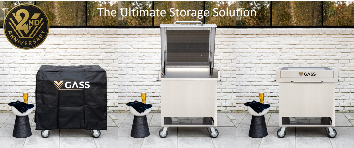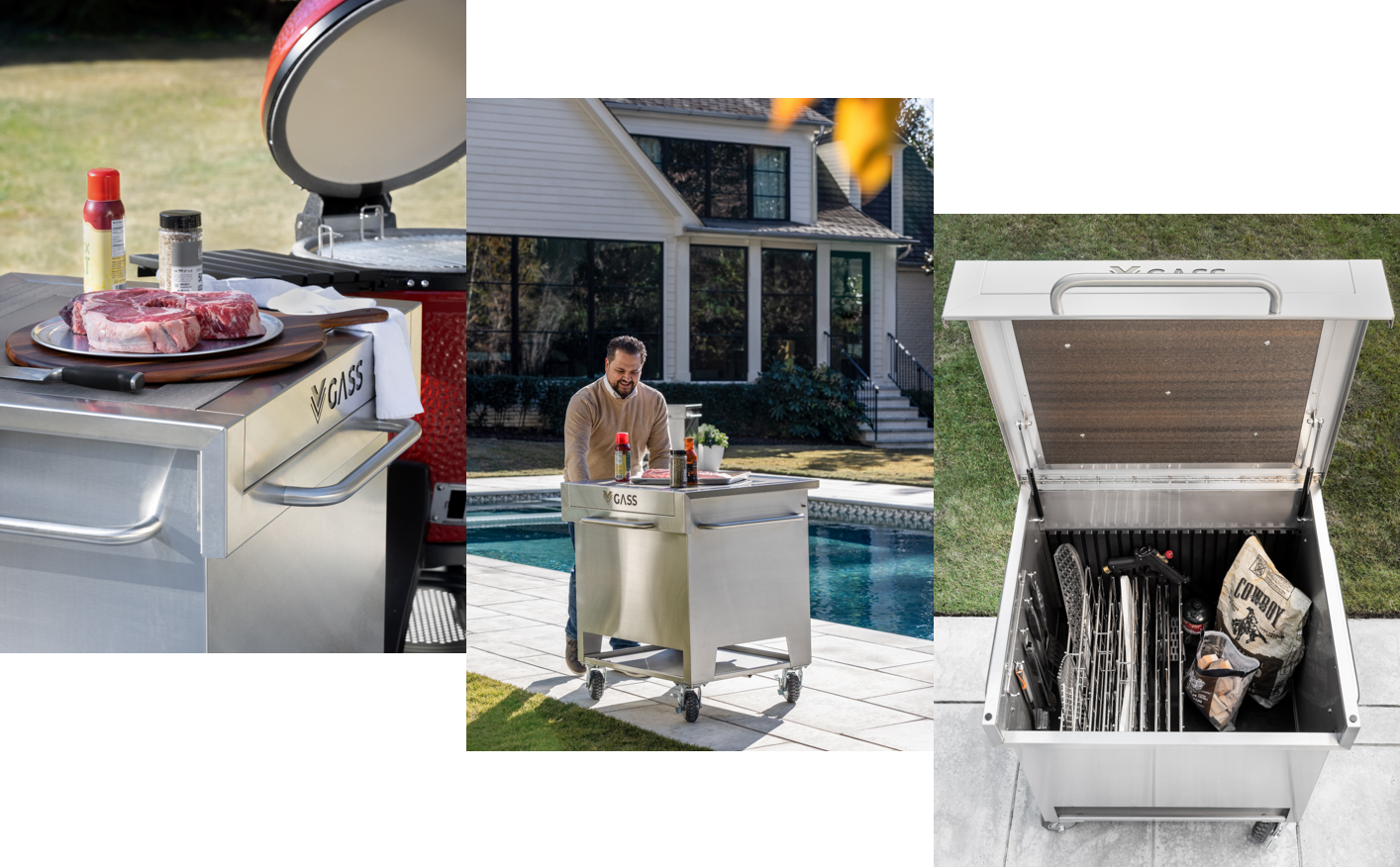 "I love my VGASS storage system! Located close to my grill, it stores a ton of grill parts, as well as my Grill Gun, and a full bag of charcoal. It also works beautifully as a serving cart. Highly recommended!" Steve L