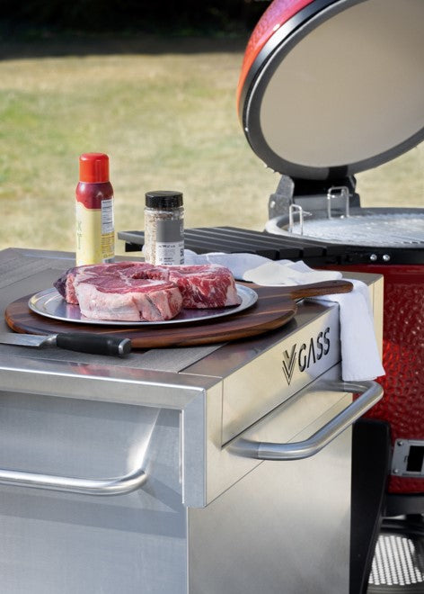 He wasn’t looking to start a company or sell a product, but like grillers everywhere he bought a lot of accessories to go along with his first Kamado Joe: deflector plates, drip pans, a pizza stone, cast iron grates and griddles, and more. While he was having a lot of fun, he quickly discovered the question plaguing many outdoor cooks: “where do I store my stuff?”